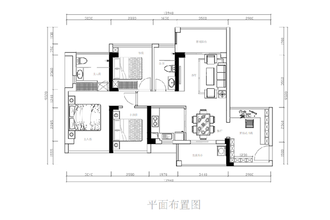 裝修方案:平面布局中選擇小孩房跟主臥在一個(gè)空間里方便照顧小寶貝